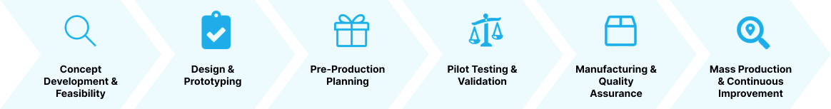 We focus on optimizing manufacturing processes to ensure that production can scale efficiently and meet quality standards. This includes preparing for mass production, setting up quality control measures, and streamlining production workflows.